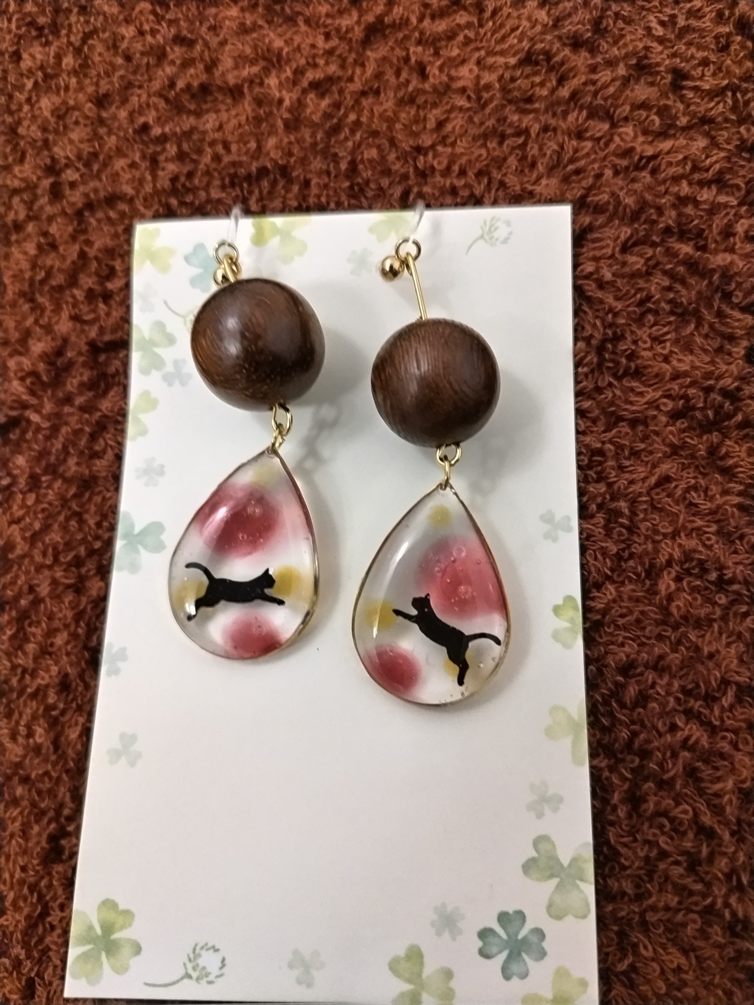 素敵なお客さまとの出会いにより素敵な黒猫のレジンイヤリング・ピアスができました。